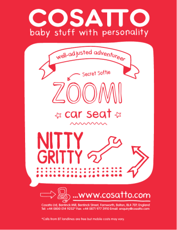 As soon as I took the Cosatto Zoomi out of the box my toddler Nathaniel. 0 - 13kg -1 Note. Until the back rest is in line with the booster seat.
